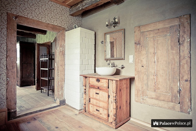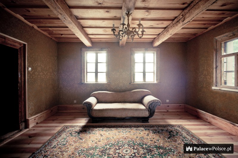 Po przekroczeniu progu daje się odczuć przyjemny orzeźwiający zapach starego drewna, a ceglana podłoga w połączeniu z wiekowymi belkami i sufitem zapewniają niepowtarzalny klimat. Wyposażona w pełni w zdobycze cywilizacji kuchnia, zachęca jednak do skorzystania z kuchni kaflowej, pieca chlebowego czy kamiennej chłodnej piwnicy z łukowym stropem. Klasyczny kominek kaflowy w salonie doskonale ociepla atmosferę, a znajdujące się w zabytkowym kredensie szkła zachęcają do skosztowania wytwarzanej w gospodarstwie na bazie własnych ekologicznych owoców tradycyjnej nalewki malinowej.